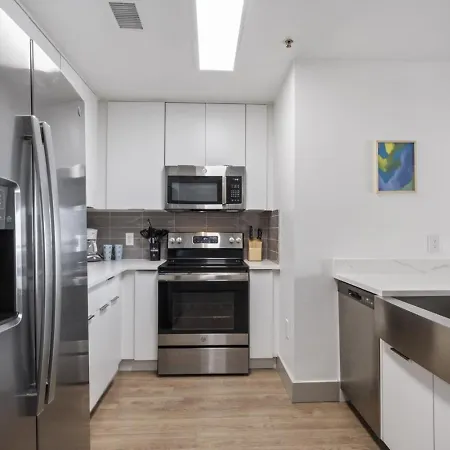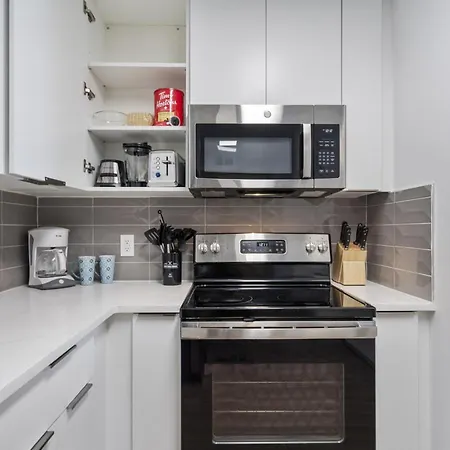 A fully furnished kitchen is featured with oven and a dishwasher. Greyhound bus station can be found 500 feet from Bright Uptown Bliss - Free Parking, Walkable, Views Apartment. For a more exciting experience, guests can take part in billiards during their stay.