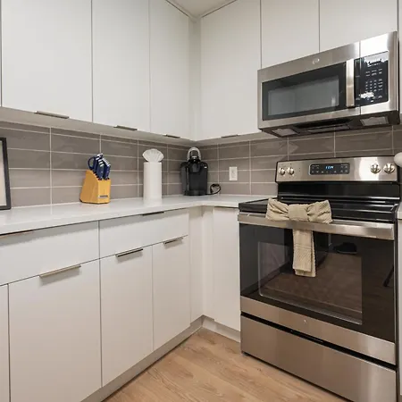 Along with coffee and tea makers, this apartment is equipped with a fully-fitted kitchen that includes a microwave, a refrigerator, and kitchenware. The nearest bus stop North Graham Street at West 5th Street is approximately 400 metres from the apartment. Access to fitness classes allows guests to add variety to their leisure.