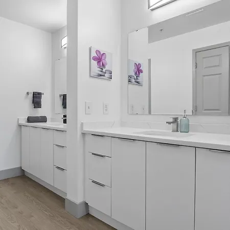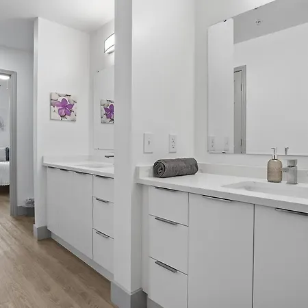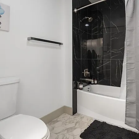 The 98 m^2 Beautiful Blue Spacious Free Parking View Gym Charlotte apartment is nestled right in the centre of Charlotte and is approximately a 25-minute walk from Hanover Square. Activities like billiards are available for guests to make their stay more memorable.