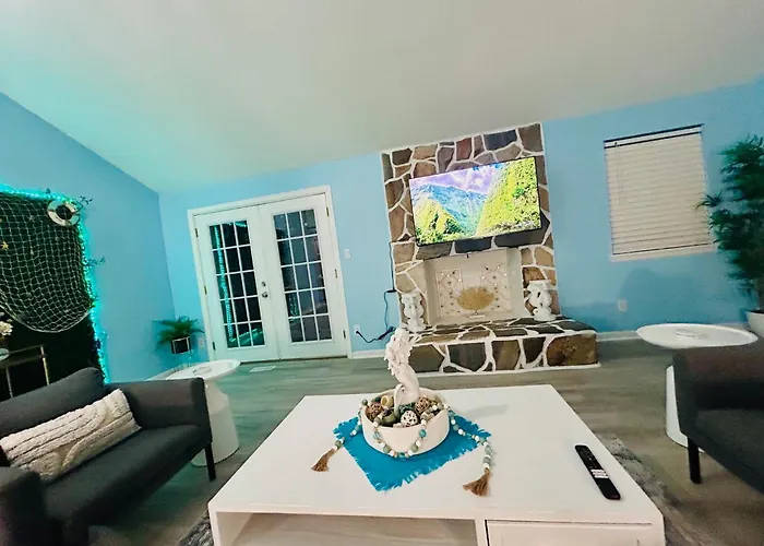 Staying at the 2-bedroom Coastal Retreat Near Pineville And Clt Charlotte villa, guests can easily reach Sky Zone Trampoline Park Pineville, located around a 25-minute walk away. Situated in the Pineville district of Charlotte, this holiday home features a patio overlooking garden terrace.