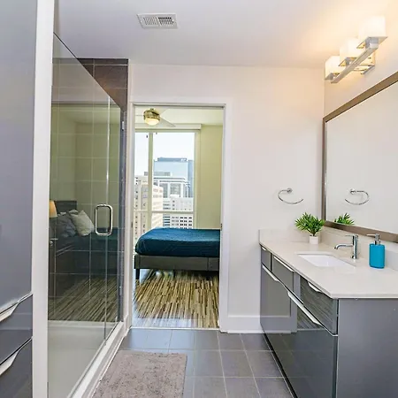 The apartment is situated in the Downtown Charlotte district, 400 feet from the 5.4-acre public Romare Bearden Park and fairly close to Wells Fargo History Museum. The accommodation is within 10 minutes' walk of 3rd Street/Convention Center city rail and 0.3 miles from BB and T Park. NASCAR Hall of Fame is also situated within a few blocks of this apartment.