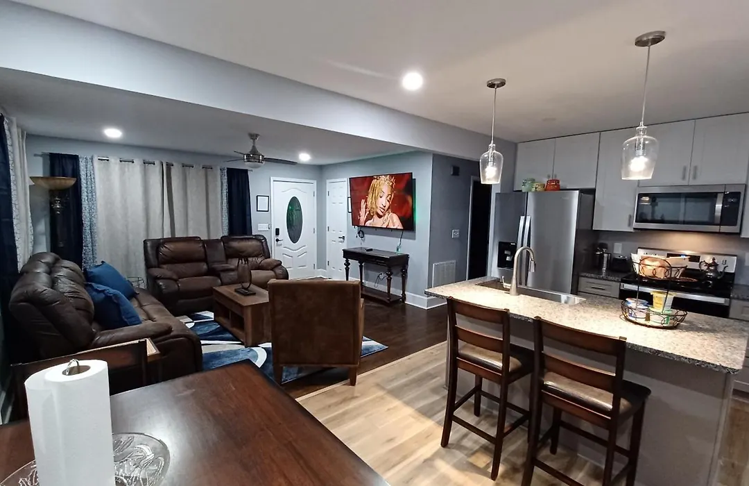 The 2-bedroom villa is only a few steps from the 24 - acre Independence Urban Park, while First Baptist Church-West is 0.3 miles away. The 2-bathroom villa is a 20-minute drive from Charlotte Douglas International airport and a 10-minute drive from The Bank of America Stadium. This Charlotte property provides easy access to natural wonders such as Romare Bearden Park (1.6 miles) and Ray's Splash Planet Water Park (1.8 miles).