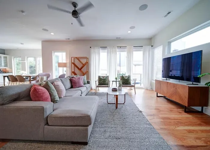 Downtown CharlotteStaying at the 4-bedroom City Views Rooftop Hot Tub & Short Walk To Stadium Charlotte villa, guests can visit The Bank of America Stadium, which is only 1.1 km away.View details+More detailsCheck rates - Luxe Townhome Rooftop Hot Tub Parking