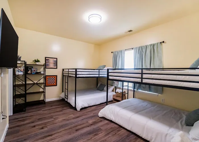 1230 Squirrel Hill RoadSituated 4.5 km from Charlotte Museum of History, the 2-bedroom Newly Built 4Bd | Cozy Stay W/ Movie & Games Charlotte villa entices guests to explore various tourist attractions in the area.View details+More detailsCheck rates - Family Cabin With Outdoor Living Areas And Foosball Table In Nc