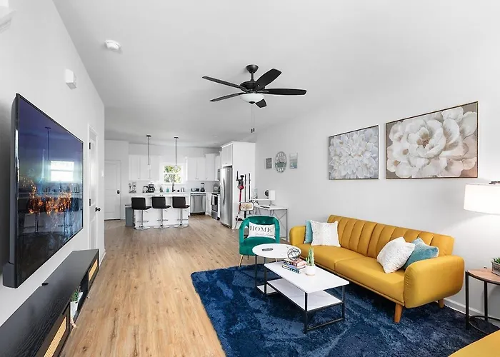 The 2-bathroom holiday home is located in proximity to Charlotte Douglas Airport Overlook and it takes 9 minutes to stroll to Amay James Park. The villa is situated 3.7 miles from such entertainment sites as Spirit Square Arts Center Movie Theater. This Charlotte accommodation is about 10 minutes' drive from Carolinas Aviation Museum.