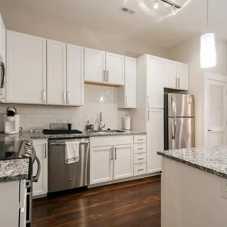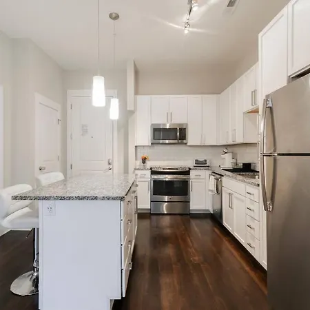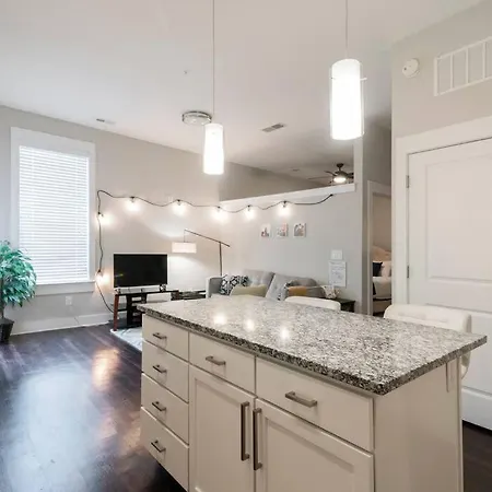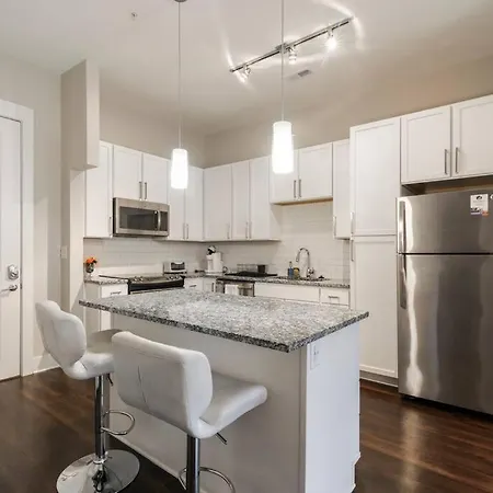 A fully furnished kitchen is equipped with oven and a dishwasher at the guests' disposal. Charlotte Douglas International airport is at a 20-minute driving distance, and Kings Dr & Torrence St bus stop is in close proximity to the property.