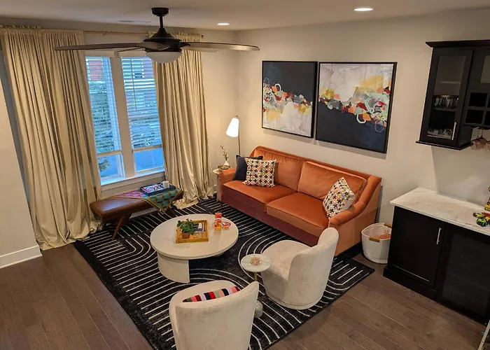 This accommodation comes equipped with self-catering amenities, including a full kitchen, and an outdoor dining area for guests to enjoy. There is also oven and a dishwasher available in the kitchen. You can taste American cuisine in Pinky's Westside Grill, located only 13 minutes' walk from Queen City Castle - Rooftop, Garage, King Beds, Pet Friendly villa. West Morehead Street at Grandin Road bus station can also be found within easy reach of the Charlotte villa.
