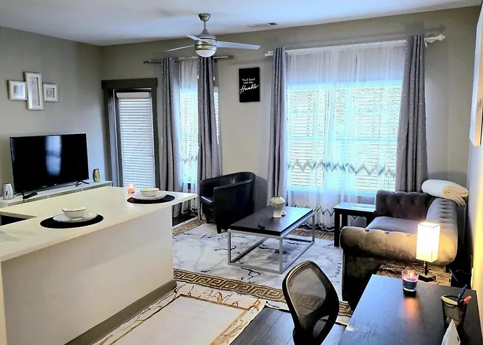 The 65 ft² Queen City Getaway With Pool Charlotte apartment is located in Charlotte, only 0.9 miles from ImaginOn, and offers guests a swimming pool and a fitness center. Enjoy a walk around Chamber Of Commerce Parking Garage, not far from the apartment.