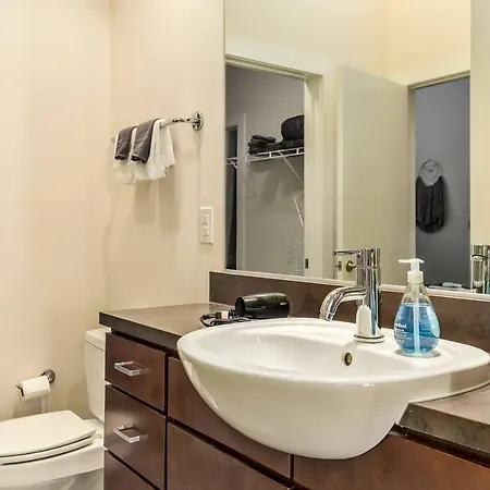 Trifecta 10 Min Walk To 7Th St Market Superhost apartment features a bathroom with towels.