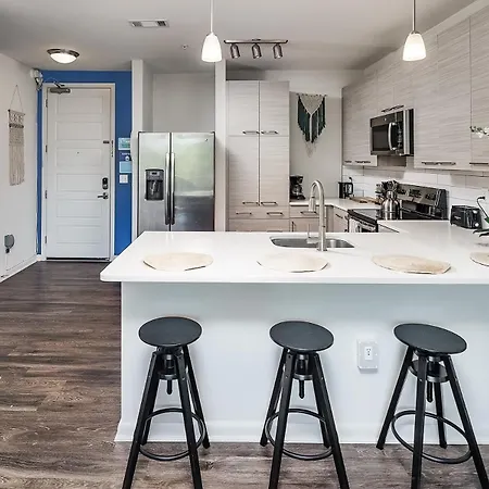 The 1-room Uptown 4Th Ward Luxury Apt Year-Round Pool Charlotte is located 1.8 miles from the night Comedy Zone Club and within 25 minutes' walk of Levine Museum of the New South. Situated a stone's throw from Ray's Splash Planet Water Park, this apartment offers a swimming pool for guests' enjoyment.