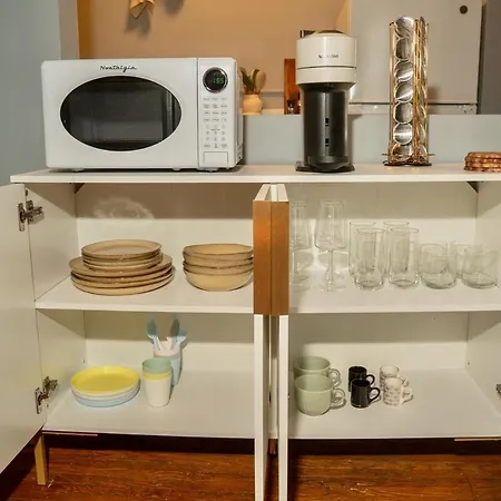 To enhance your comfort, this accommodation features an equipped kitchen with a fridge, a kitchenware, and glassware provided. The nearest bus stop, Flixbus, is 0.3 miles away.