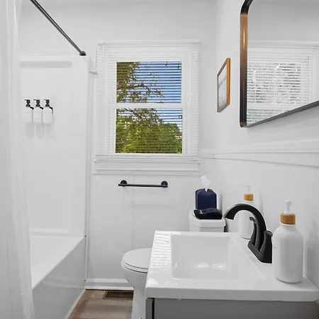 Views of the patio can be enjoyed from this Charlotte property. Guests can also use dryers and towels, and a tub, a separate toilet, and a shower.