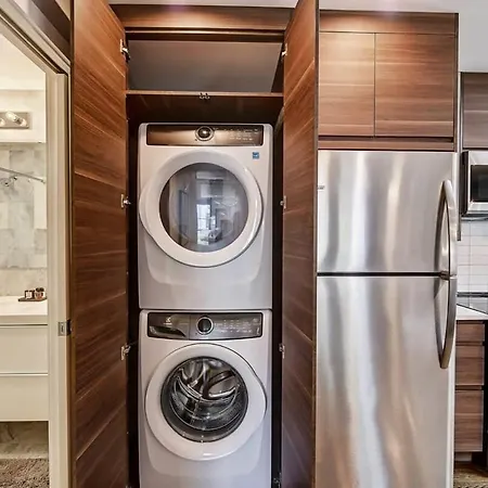 Relax And Recharge In Myers Park Villa includes a bathroom with a washing machine. A hair dryer, bath sheets, and towels are included to enhance your comfort.