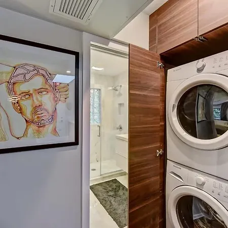 Stylish 1Br In Myers Park Villa comes with a bathroom with a washing machine. Bathrooms are also equipped with a hair dryer, bath sheets, and towels for your comfort.